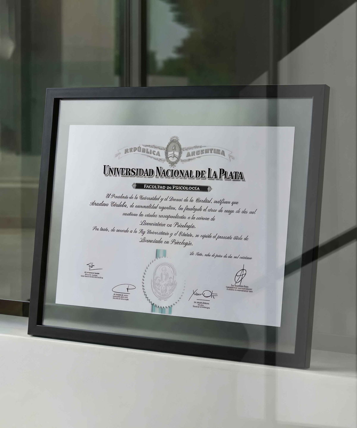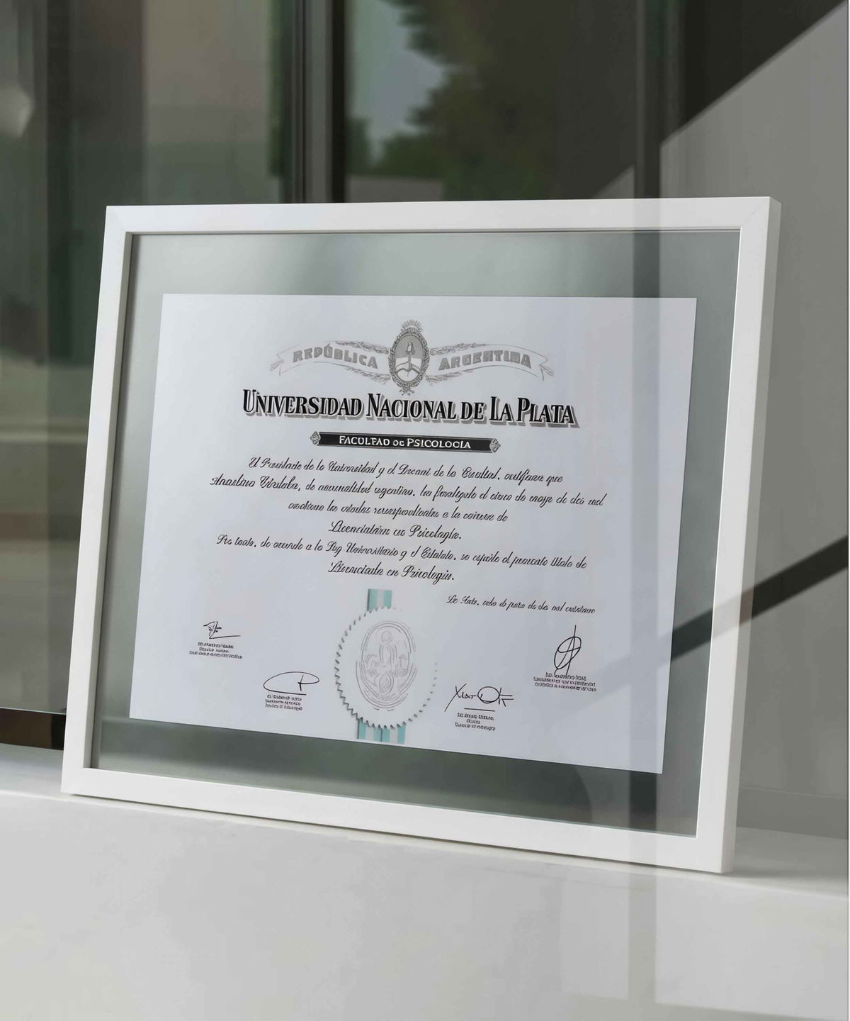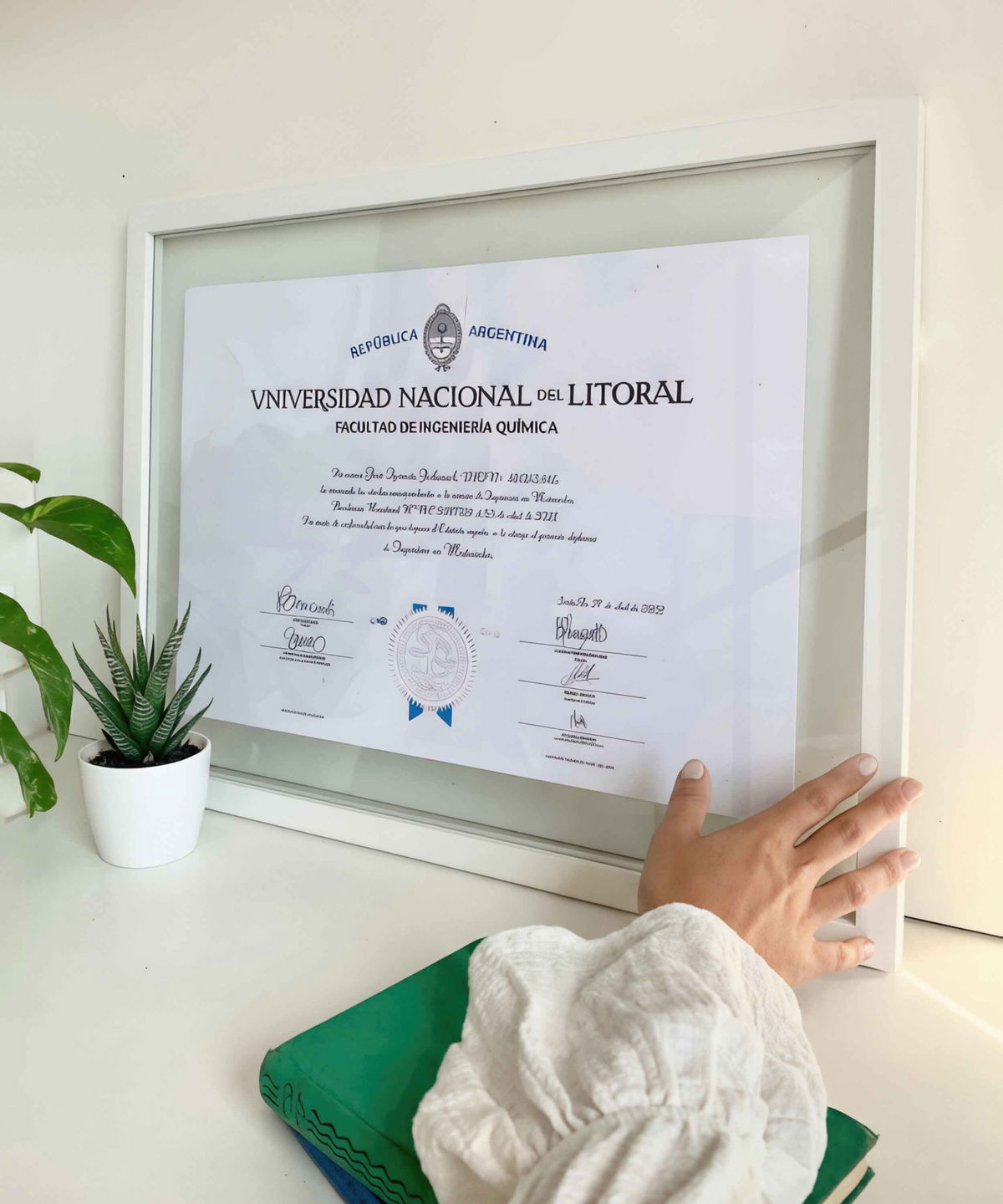 Este producto esta pensado para enmarcar certificados y diplomas, es una forma elegante de mostrar tus logros más preciados.