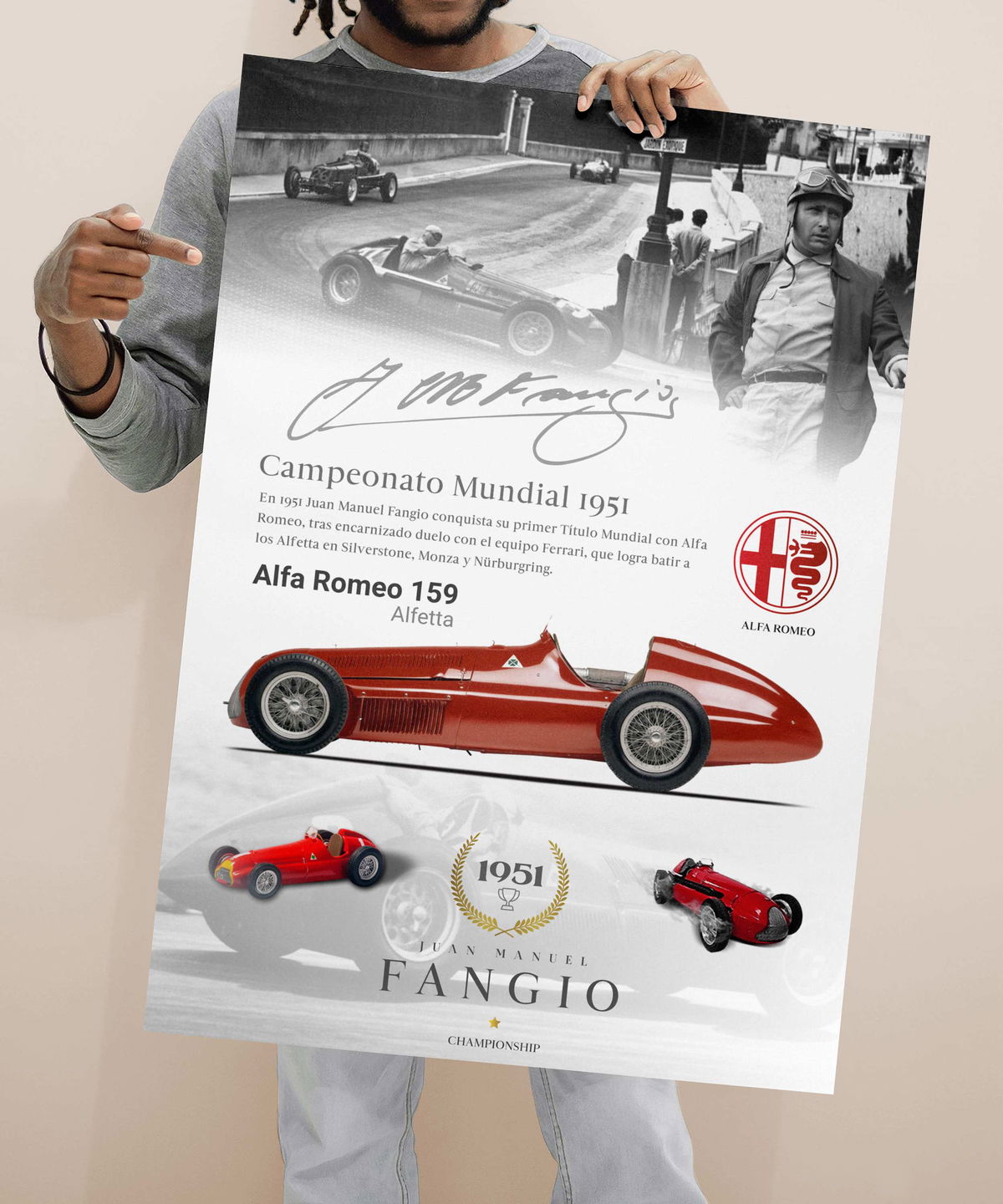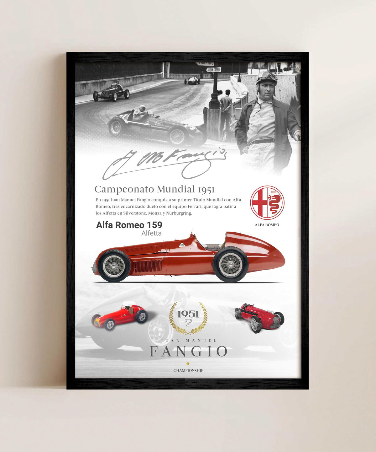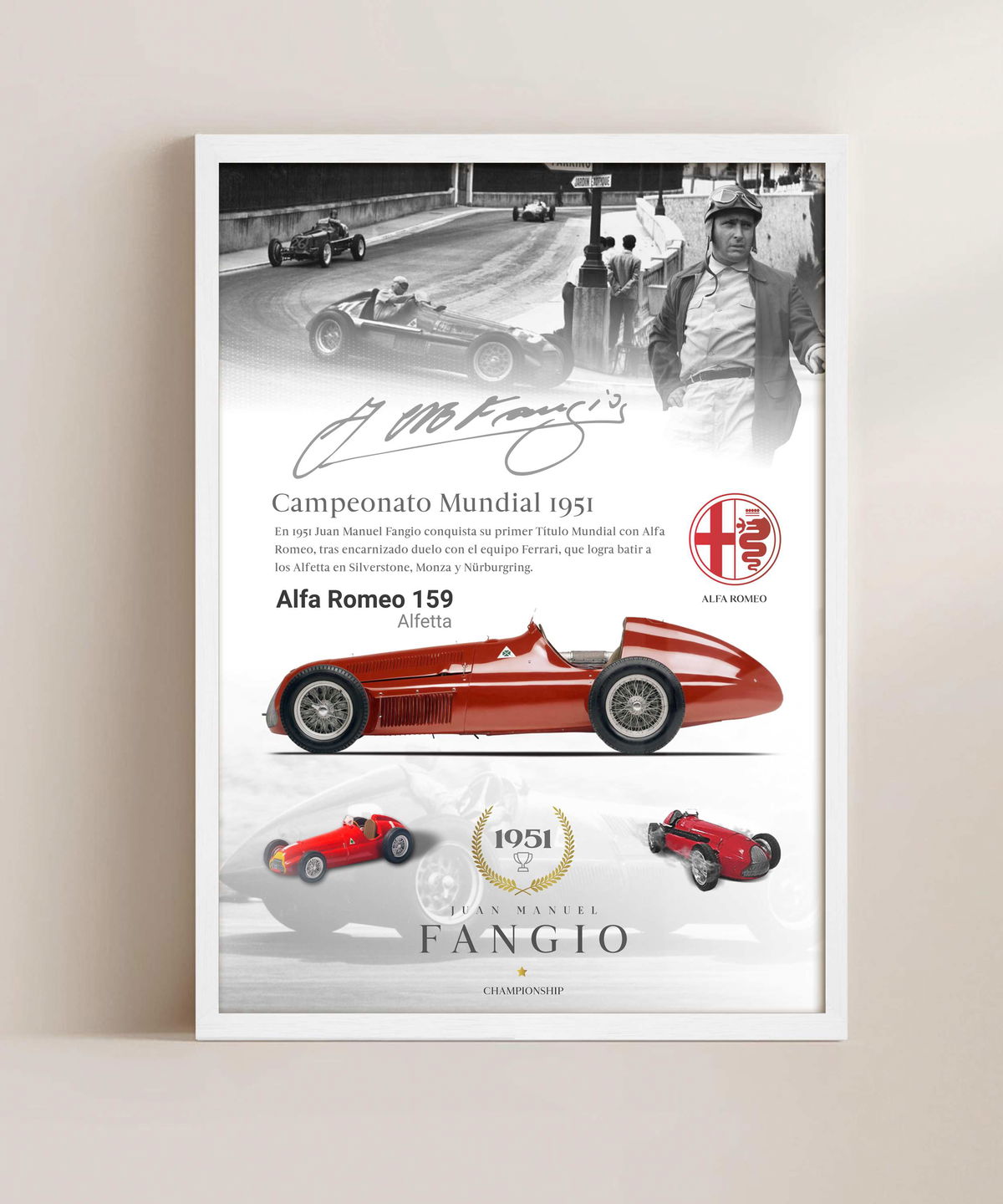 Sorprende a los fanáticos del automovilismo con un cuadro de Juan Manuel Fangio. Cada imagen evoca la emoción de sus victorias y la admiración por su talento. ¡Un detalle que perdurará en el tiempo! Visita ENOVA CUADROS y encuentra el cuadro perfecto para celebrar la pasión por las carreras.